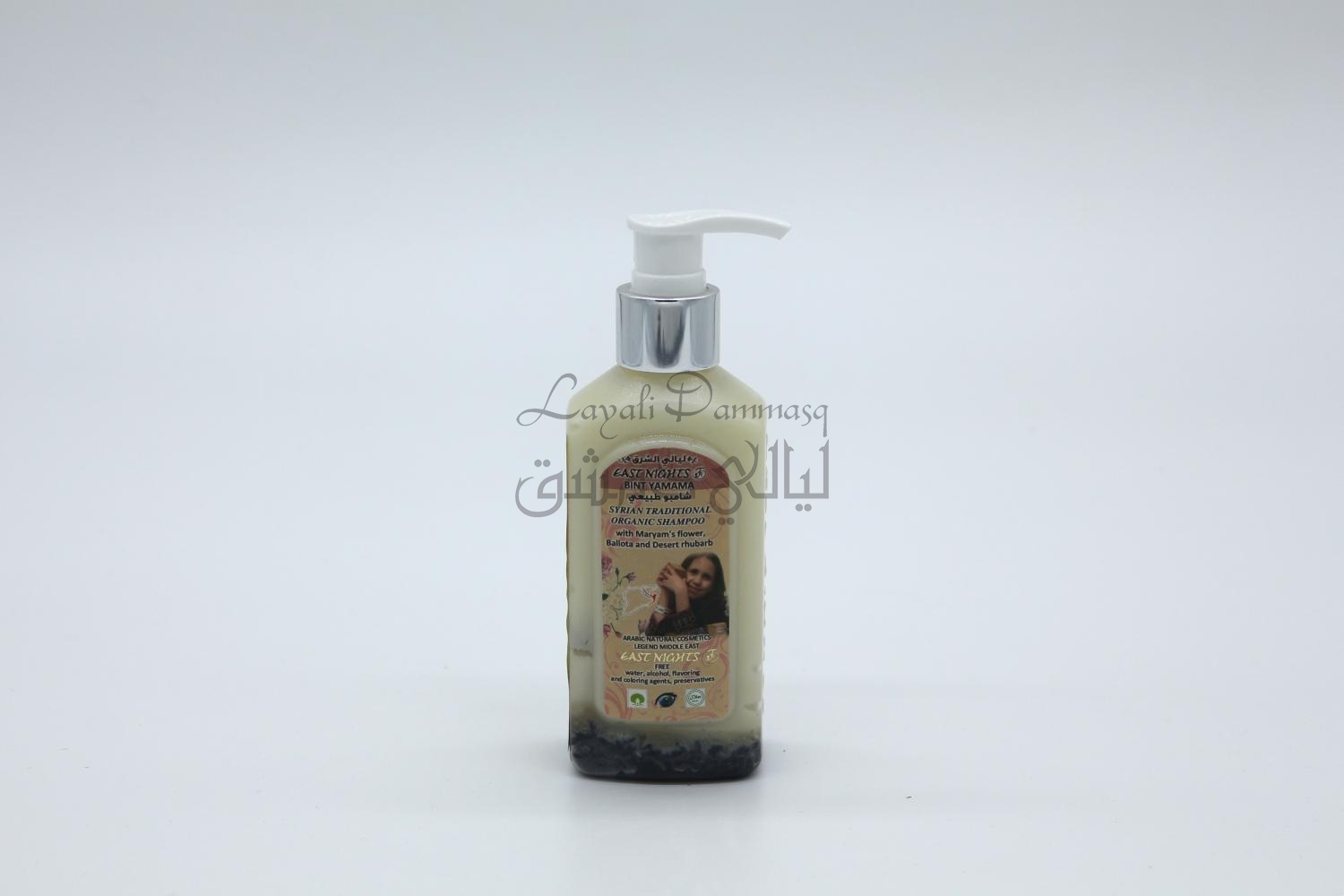 Сирийский традиционный органический шампунь Bint Yamama «Дочь Ямамы» с иерихонской розой, белокудренником и ревенем создан технологами Национального сирийского производства восточной косметики East Nights для устранения ломкости, сглаживания пористой структуры волос, восстановления, а также придания волосам эластичности, блеска и сияния. При регулярном применении шампуня тонкие волосы становятся более плотными. Благодаря активным компонентам шампунь эффективно регулирует секрецию сальных желез.